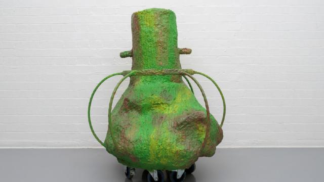 Fig. 16: Olivia Bax, Hopper, 2020. Steel, chicken wire, newspaper, glue, paint, plaster, castor wheels, varnish. 112 x 96 x 96 cm. Standpoint Gallery, London. Photo: Tim Bowditch.