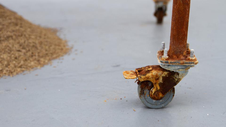 In a different but resonant way, dolly rolls into 218, an exhibition text by Olivia Bax, reflects on how functional objects such as wheels can activate sculpture through their potential for movement. In Hopper (2020), half a dozen castor wheels, fixed beneath a steel frame unsettle its function, transforming the object into a choreography of imagined shifts, rolls, and repositions. For me, the wheels charge the sculpture with latent energy, producing a perceptual tension between stillness and motion.
