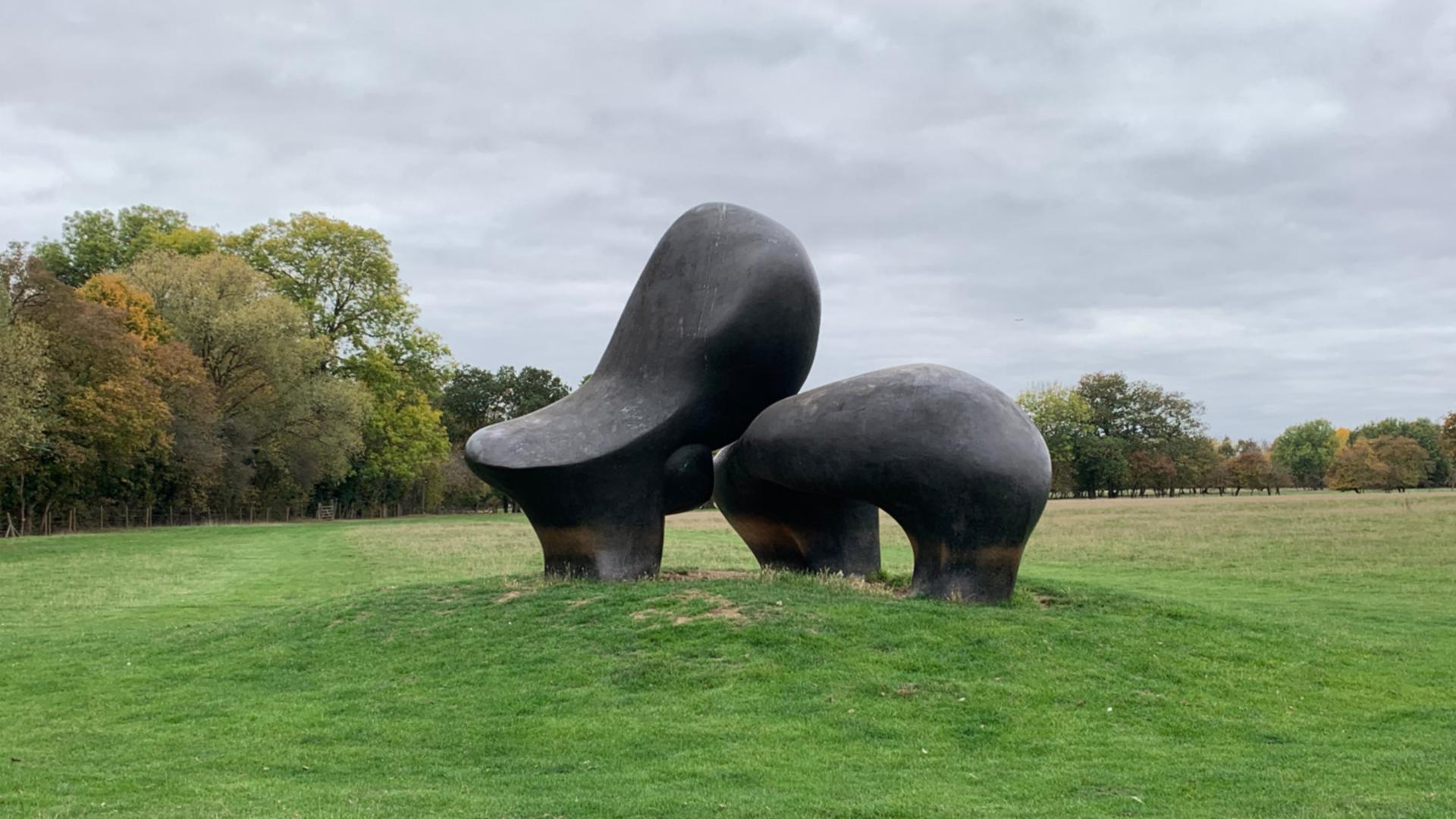 During a research visit to Henry Moore Studios & Gardens as part of our MA Sculpture residency week in Unit 3, I encountered Sheep Piece (1971-72), a monumental bronze sculpture sited in the sheep yard field of the estate. The work consists of two similar, yet distinct, rounded biomorphic forms positioned in close proximity, leaning gently toward one another. For me, the composition suggests interdependence, creating a dynamic tension between strength and vulnerability held in equilibrium.